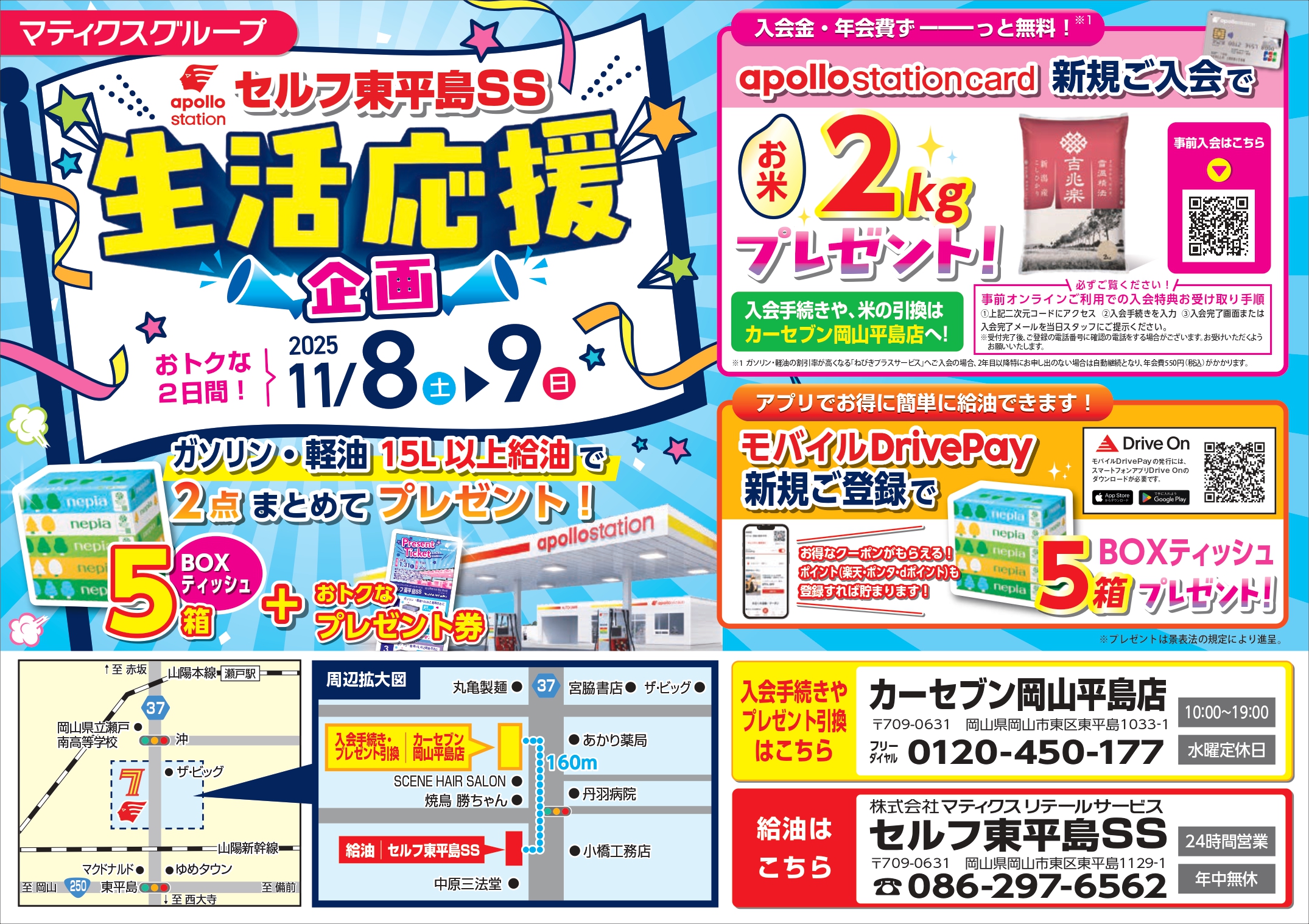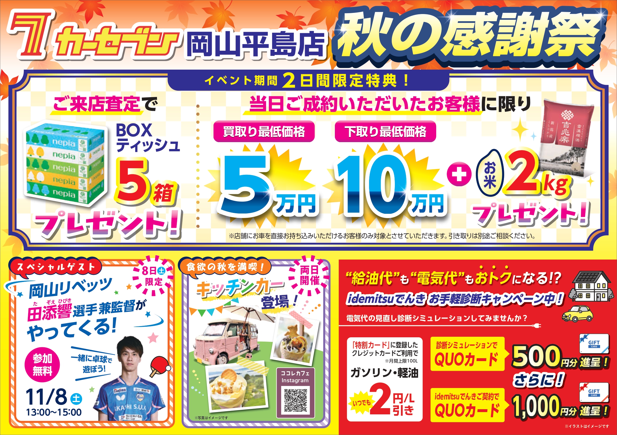【11/8、9開催】セルフ東平島SS & カーセブン岡山平島店 生活応援イベントのお知らせ