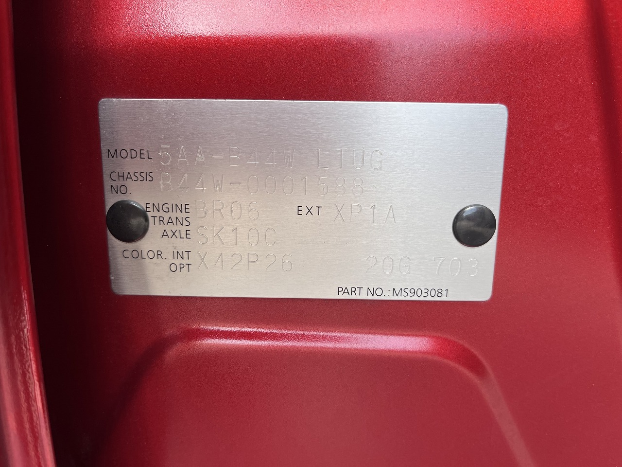 - 車台番号 B44W-0001588