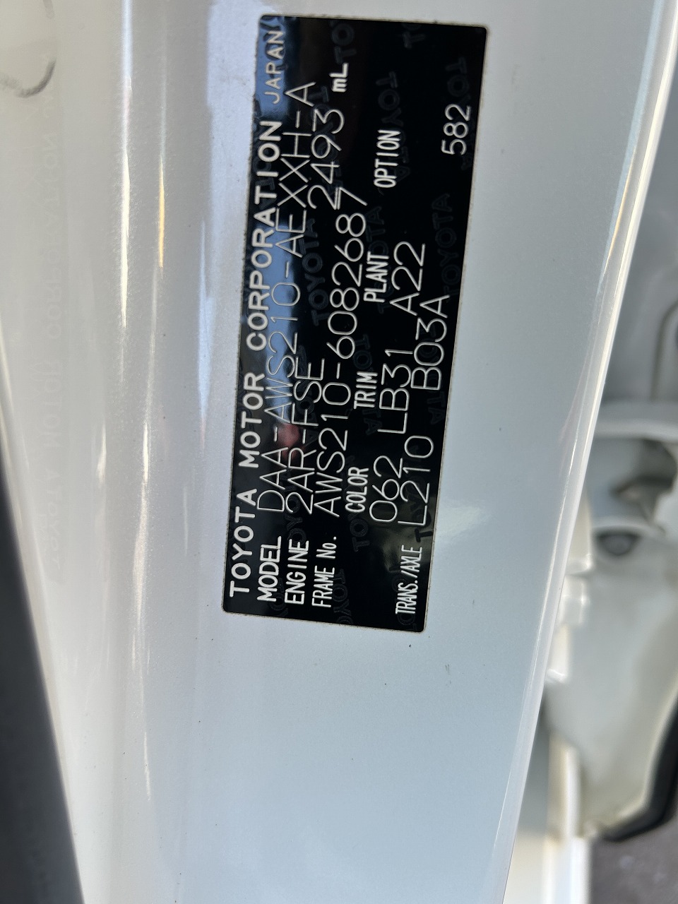- 車台番号 AWS210-6082687