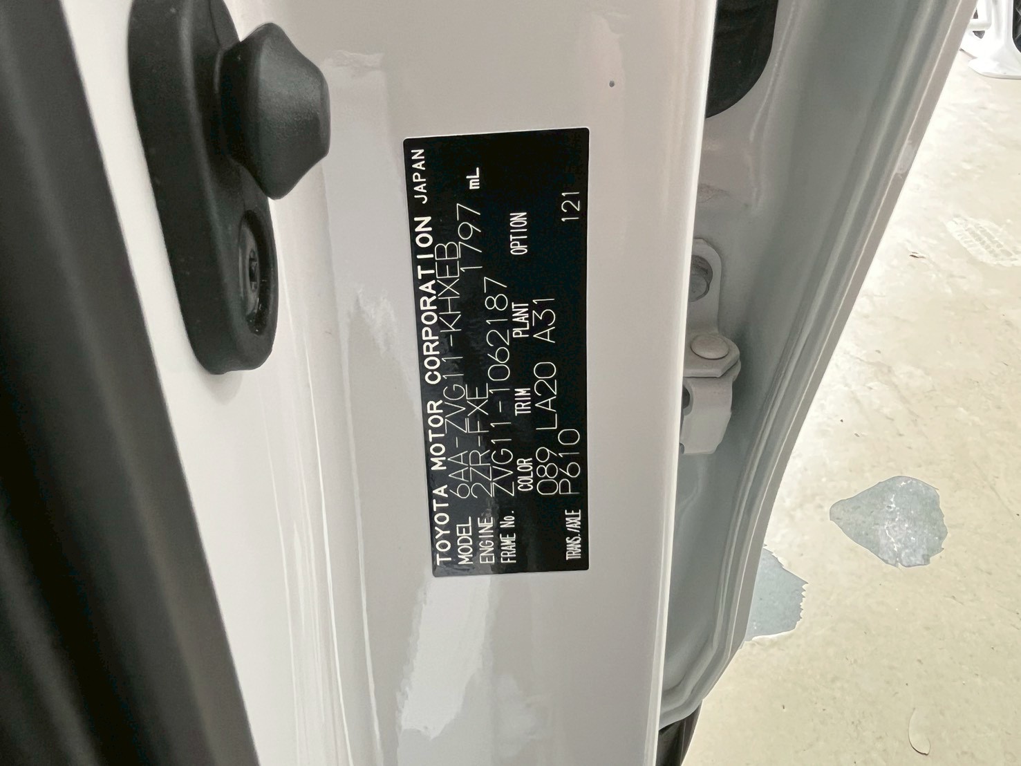 - 車台番号 ZVG11-1062187