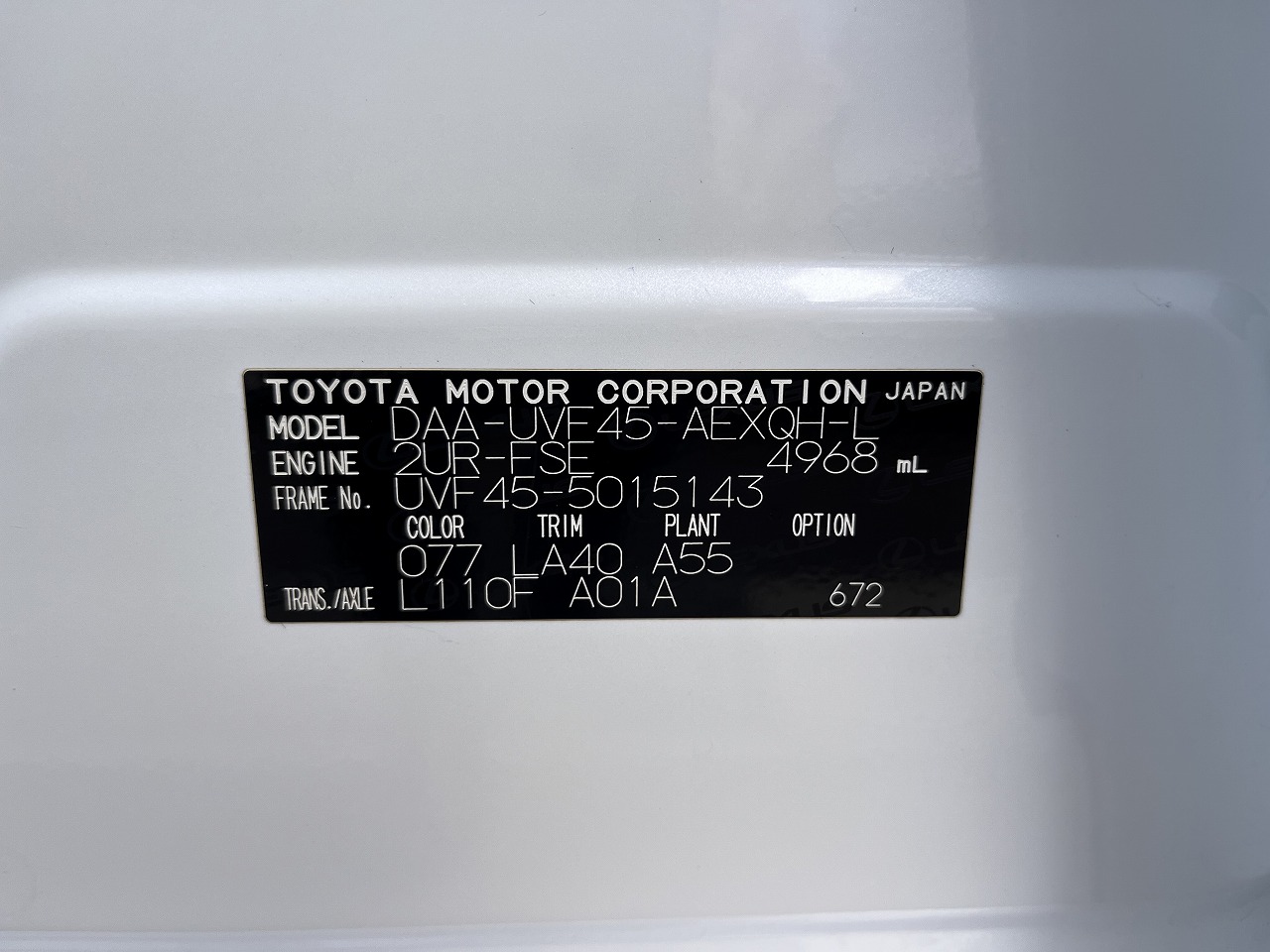 - 車台番号 UVF45-5015143