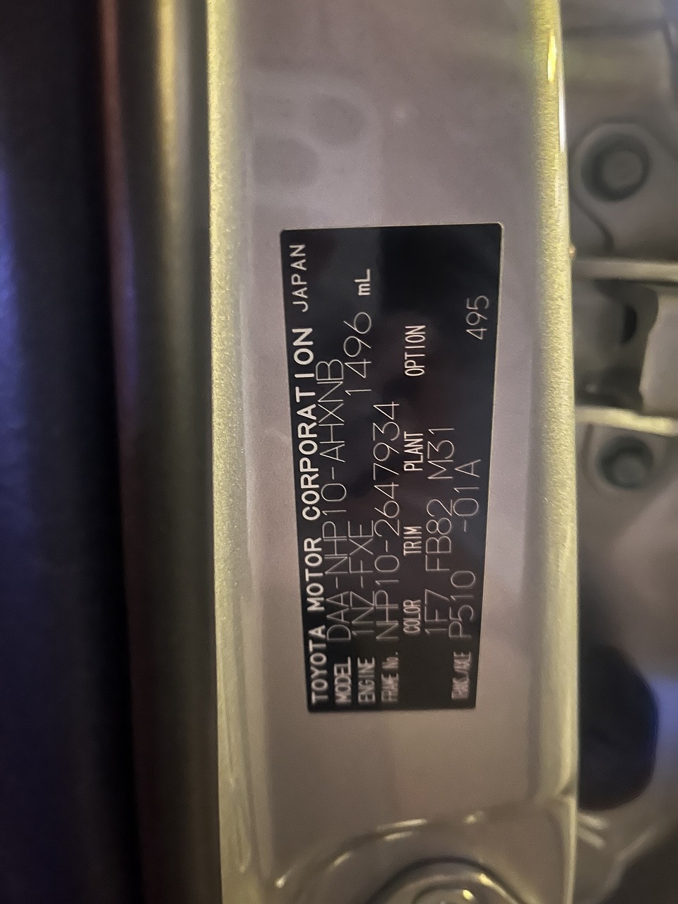 - 車台番号 NHP10-2647934