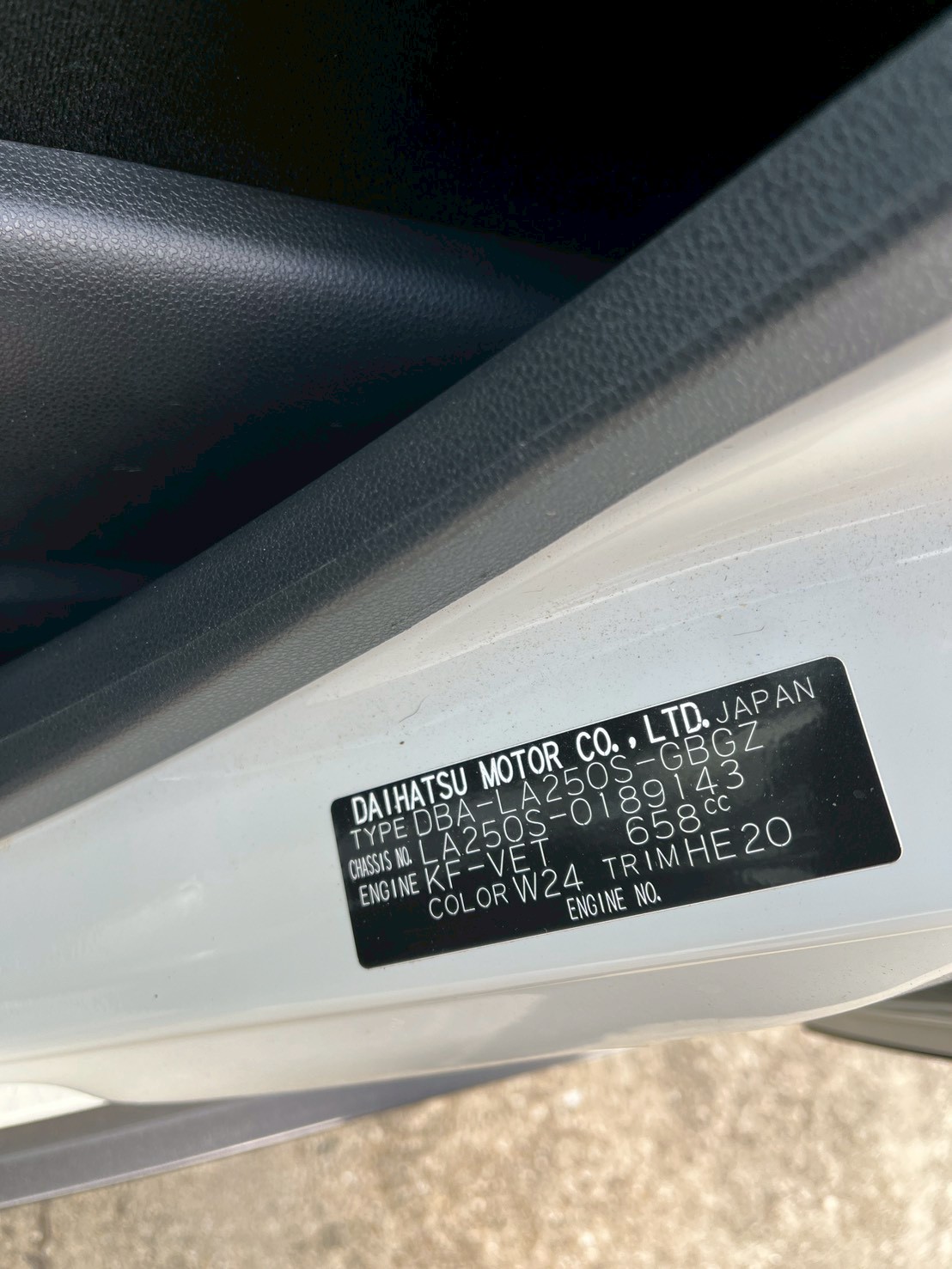 - 車台番号 LA250S-0189143