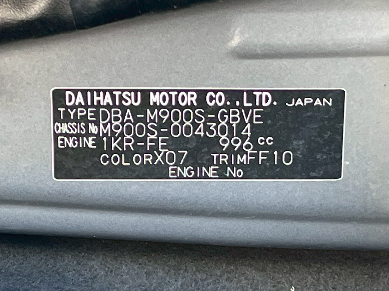 - 車台番号 M900S-0043014